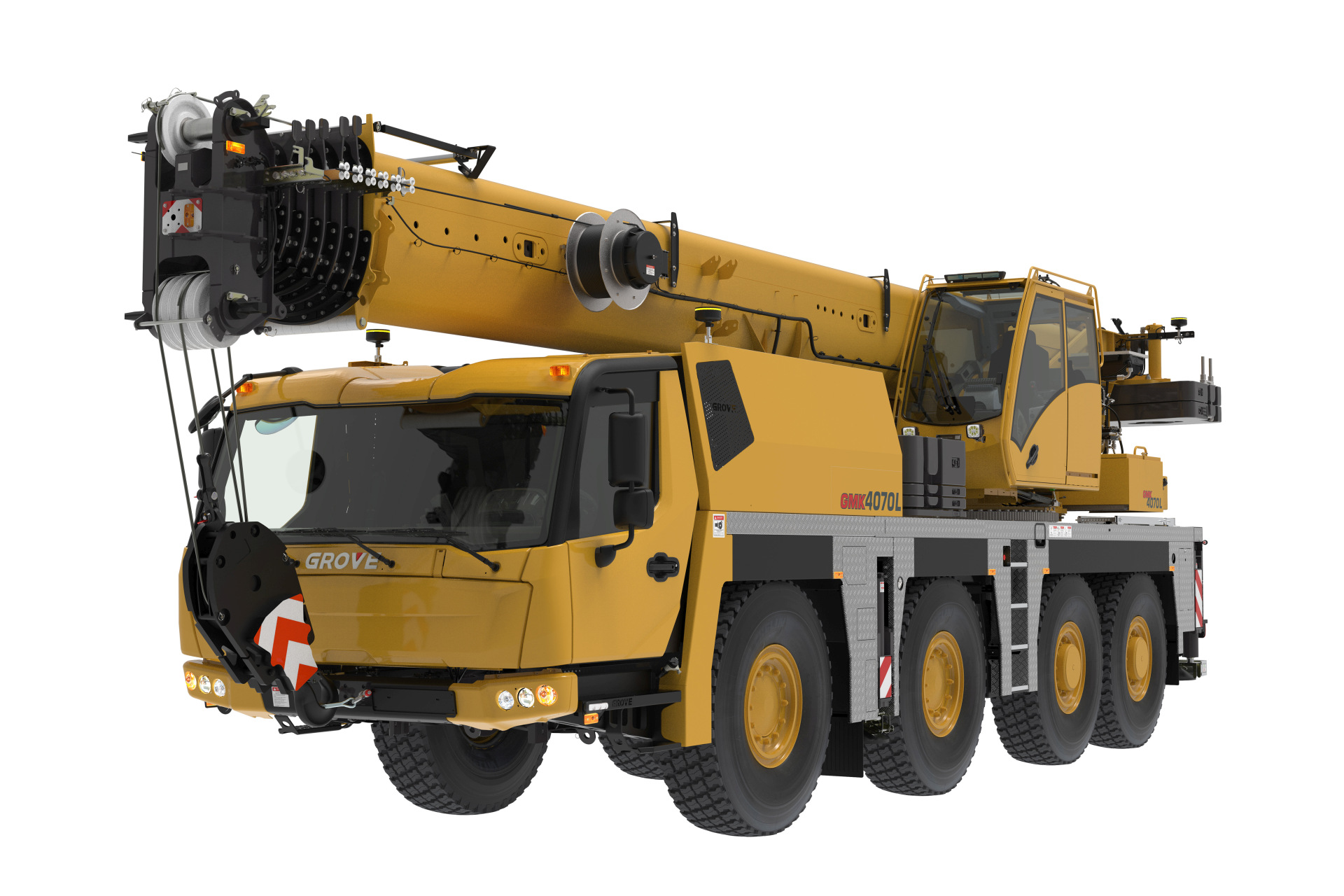 The ultimate light weight taxi crane. The GMK4070L is an outstanding four-axle taxi crane that, with its 60-meter-long boom, offers both the longest boom and the lowest gross vehicle weight in its class. Within 10 t per axle, the crane can carry a 5.2 t counterweight and even 13.3 t counterweight with 12 t axle load. This flexibility makes it the ultimate taxi crane. In addition, the GMK4070L impresses with strong load charts, both with full counterweight and taxi counterweight.